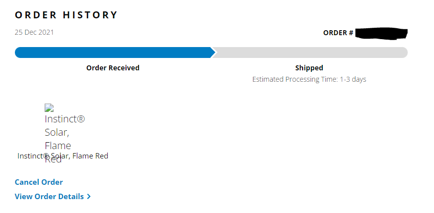 Just received shipping confirmation from Garmin; order placed 0931 on the 25th.