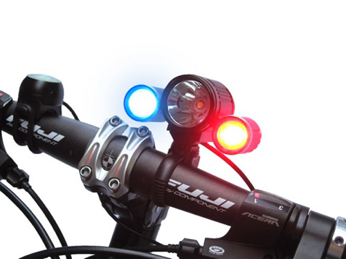 Lumicycle make a nice unit with dual Halogen headlights, dual flashing blue LEDs, a siren and tailight: