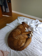 They can be a pain but so much fun everyday when I come through in the dark and hear the tail machine gunning against the floor or the sofa my heart melts. Today was her cuddled up to the cushions on her back fully outstretched.