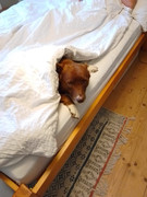 She chilled on her own for 4hours one she has scraped herself a nest in the duvet.