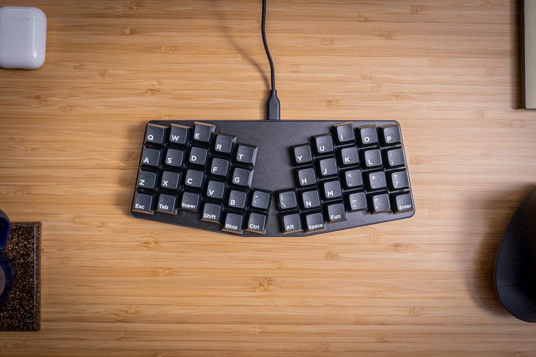 I had stopped touch typing on the cheap/OEM keyboard because the keys felt so horrible, the MKey TKL feels much nicer to type on, a little quieter too. It uses Gateron G Pro 2 (Cherry Brown equivalent) switches.