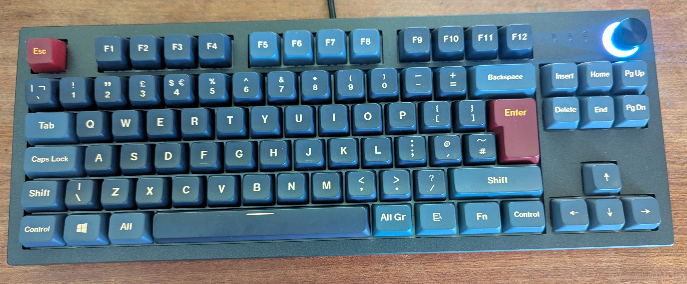 Yes that's right TKL - that's a tenkeyless keyboard, meaning there is no numeric keypad. I went for TKL after realizing I never ever use the numeric keypad! After I placed the order and investigating other keyboards I could have purchased, I also realized it lacks the Print Screen and Power keys. I have grown passionate about screen grabs over the years so this did cause some initial upset but I figure that a suitable key combination can be found to assign these functions to anyway.