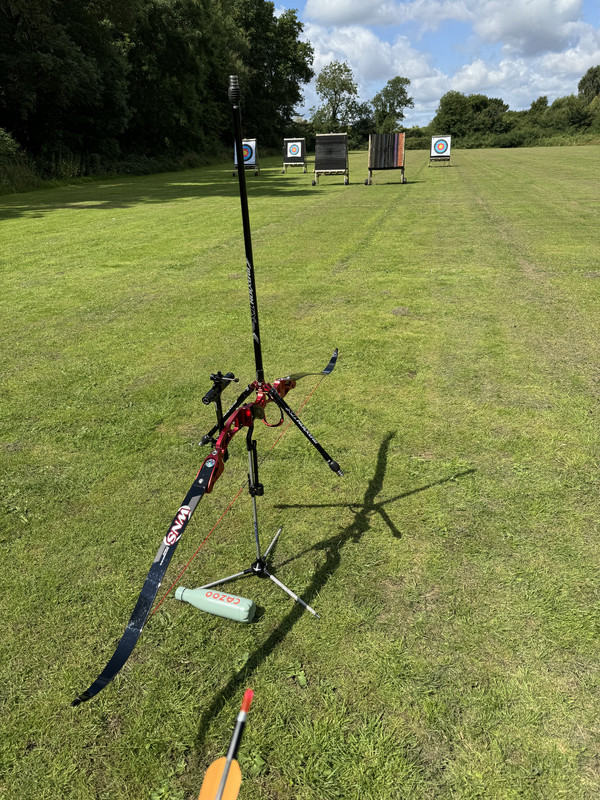 For context, next month the club starts shooting indoors at a local army base gym, where we shoot 20yds with 80cm target faces. I’m shooting 30yds with an 80cm face to get used to the smaller face, coming down to 20yds to make sure my sights are properly set up.