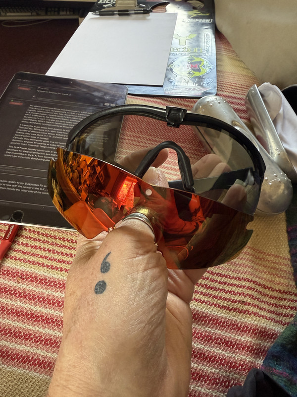 Just so people know what I’m whittering on about regarding the Si M-Frames, here they are with the photo-reactive lenses fitted, and the Revant Fire Red lenses.