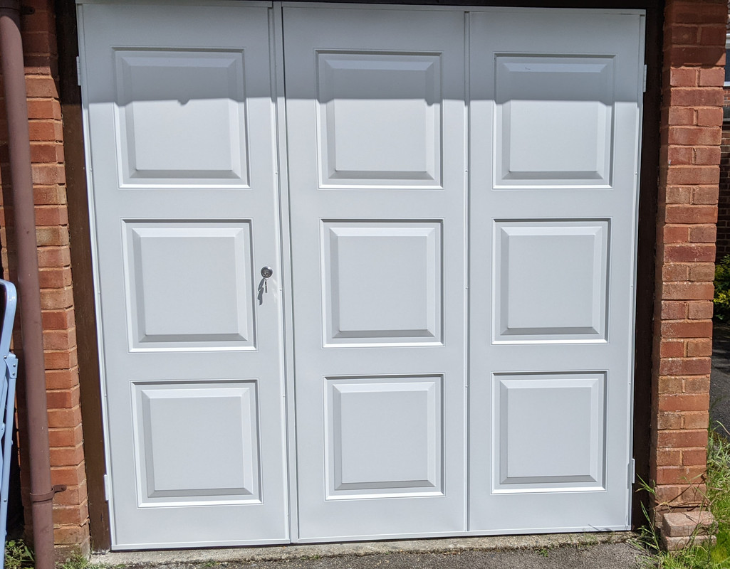 Lathams are now also doing very secure steel insulated side hinged twin doors for garage fronts.