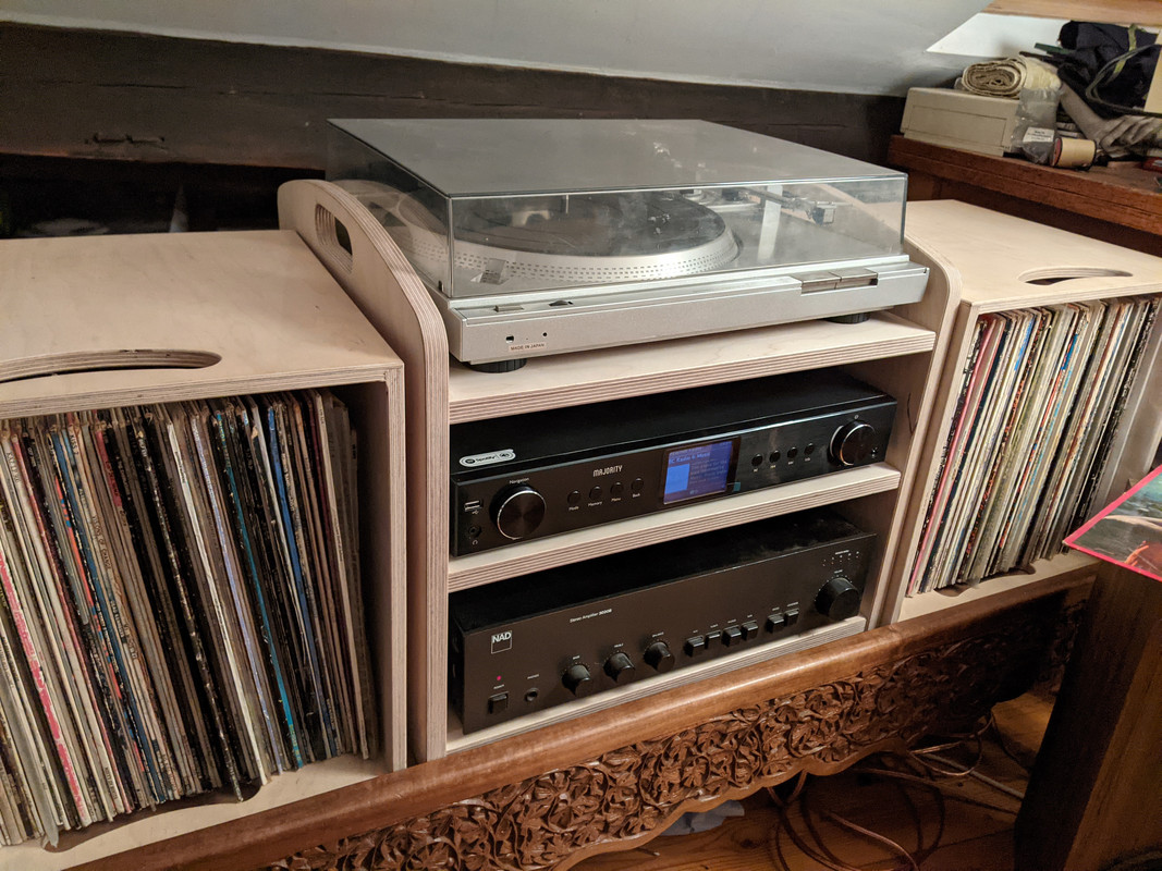 Sony Ts-22 turntable, Nad 3020B amp, Majority Fitzwilliam Dab/Internet radio, Goodmans RB20 speakers.