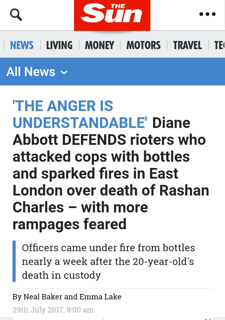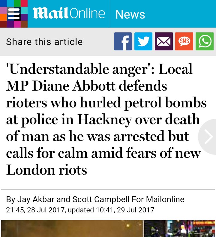As for Diane Abbot, there's never a good reason to be hurling rocks and petrol bombs at police, saying anything that could be construed as supporting this which us what she did is not going to end well.