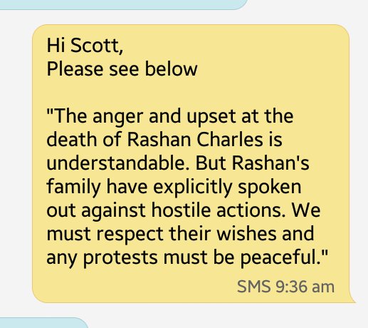 [i]The Charles family have re-issued a statement first released on Monday, which called for calm. The statement said: “We appreciate all support, but any hostile actions or other events, at this stage, that may risk detracting from our current cooperative engagement with the IPCC and Met police is unwelcome.”[/i]