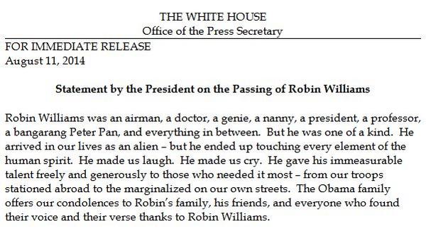 Obama's statement is perfect for him and not the usual drivel released at these times.