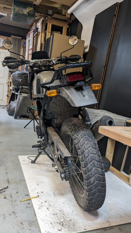 Not a motorcyclist, so I know nothing of handling technicalities, but looking at the photo above on the filling station forecourt, that front tyre looks a little anaemic, would a slightly chunkier tyre help steering stability at all? I see lots of so-called scrambler-style bikes, there’s one a page or two back, but having big fat tyres front and rear looks a bit wrong, just a bit too much rotating weight, so something in between? My brother has been a biker since he was old enough to legally own one, and despite a near fatal accident, he still rides, but while I’ve never been inclined to buy one, I look at bikes like Africa Twins (a friend has one, in full yellow trim), Tenére, and particularly the little Honda 650 Dominator, (which I’ve had a hankering for ever since they came out), and there’s that feeling that kayak23’s succumbed to!