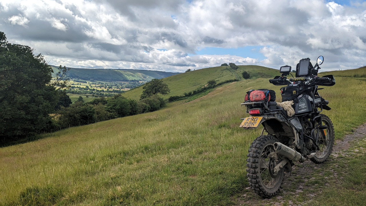 Well, it felt like we must have been down every single track lane and byway in Shropshire. Luckily it was pretty dry and so the tyre situation could have been worse. A lot of really overgrown singletrack, trying to keep it on line, some really steep descents that I would blast down on the MTB, but on a 200kg motorcycle with road tyres and abs that I hadn't worked out how to turn off, it was frikkin scary!