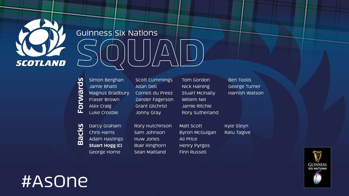 Scotland squad. Oh dear they have made Hogg captain. Somehow I do not see that working even if he has grown up a bit the last couple of years.