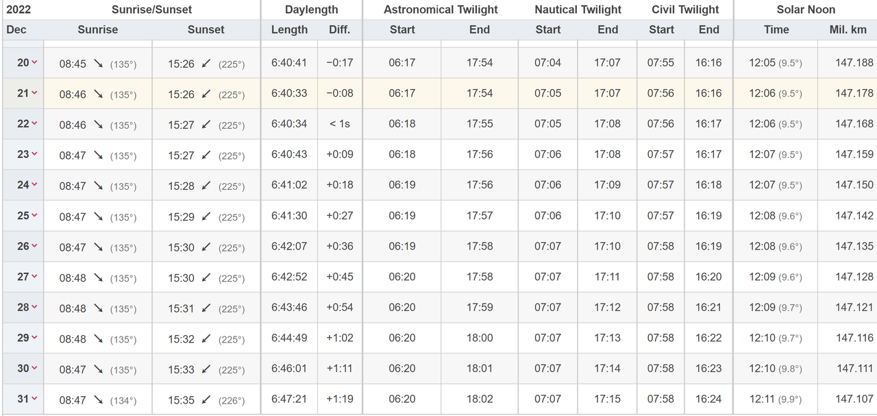 Winter solstice 2022 in Northern Hemisphere will be at 21:47 on