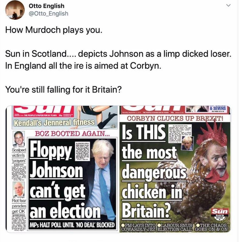 He's coming across like a drunk picking a fight at closing time now over the election. "C'mon ya beardy lefty ****, I'll do you and all ya mates. You too you wee tartan ****er, I thought you were supposed to be hard etc"