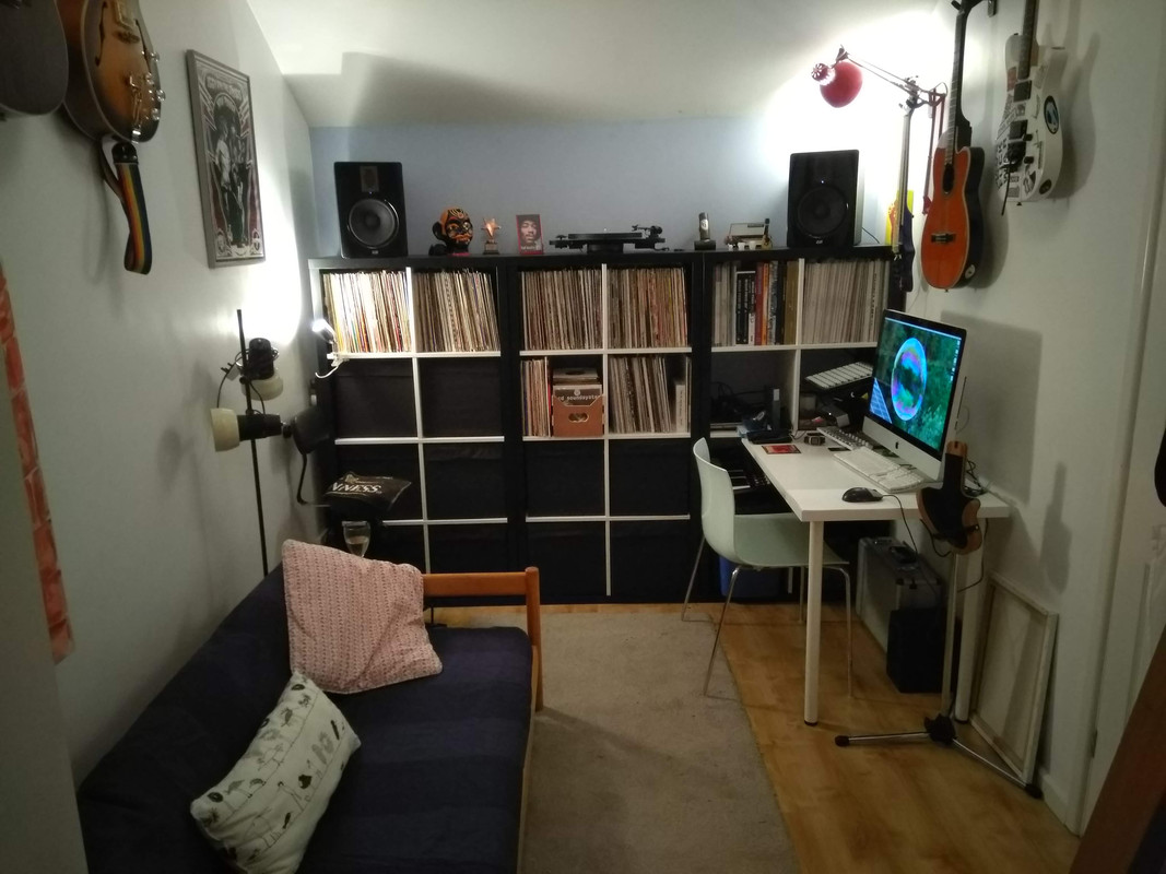 Still had the records in an IKEA shelf unit, but a floor-ceiling one.
