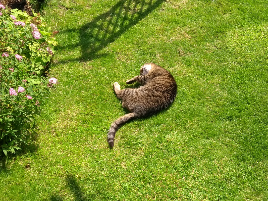 Probably got some more amusing ones somewhere, but our 2 Devon Rex house cats. They do venture as far as the garden. The grey one catches flies, the brown one spends most of his time looking for rats that we don't have any more and chasing birds on the bird table - mostly pigeons that are much bigger than him