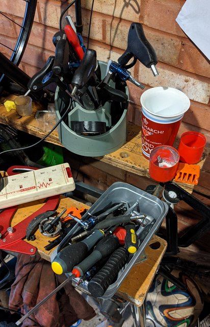 But I'm a disorganised scruffbag, so most frequently used tools just sit in a random couple of storage boxes near to the bike stand. What's the opposite to showing off?