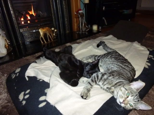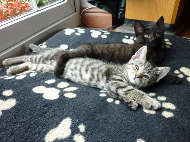 Above there's Drum and below there's Bass, who had just been exploring dark corners of the garage hence the cobwebs. Both now about 11 years old. They've been with me for just over a year after coming home with me from the Furry Friends rescue centre in Coulsdon.