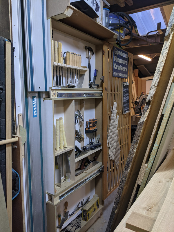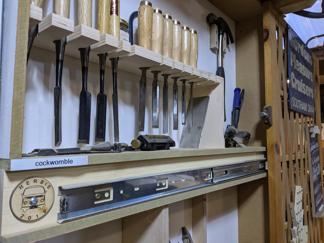I have a rack in my workshop for chisels etc and I have mounted a screen panel on it on long drawer runners, as space doesn't allow regular hinges.