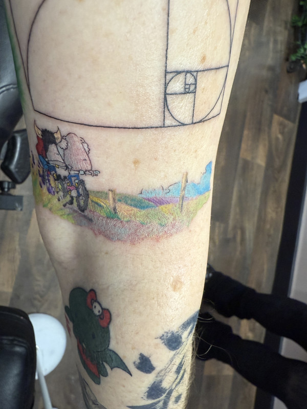 I had the Fibonacci sequence and the Hello Cthulhu touched up as well. Gemma, my tattooist, had a lot of fun with Mint, reproducing the watercolour effect, she had around a dozen or so little bottles of ink on her worktop to ink it.