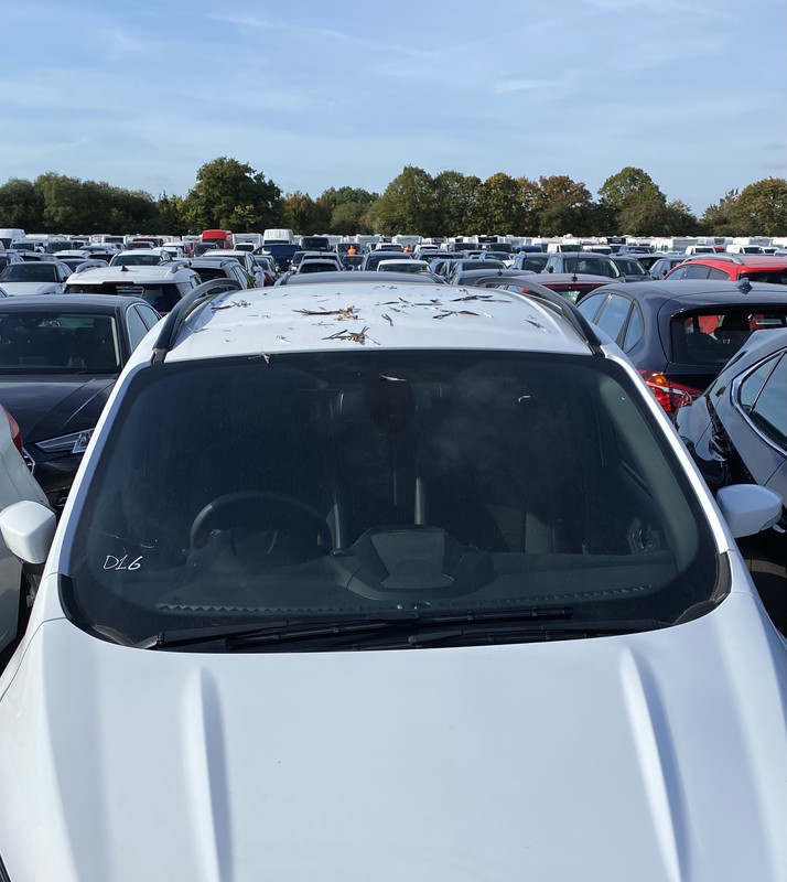 A couple of years ago, I was tasked with looking after the large storage area at work, doing pre-despatch checks, battery condition tests and looking for flat tyres or other possible issues. I’d walked along the clear stretch between two blocks of cars to the security cabin where I had my lunch, and there wasn’t anything untoward; thirty minutes later, as I walked back to the point I’d got to, and I noticed this:
