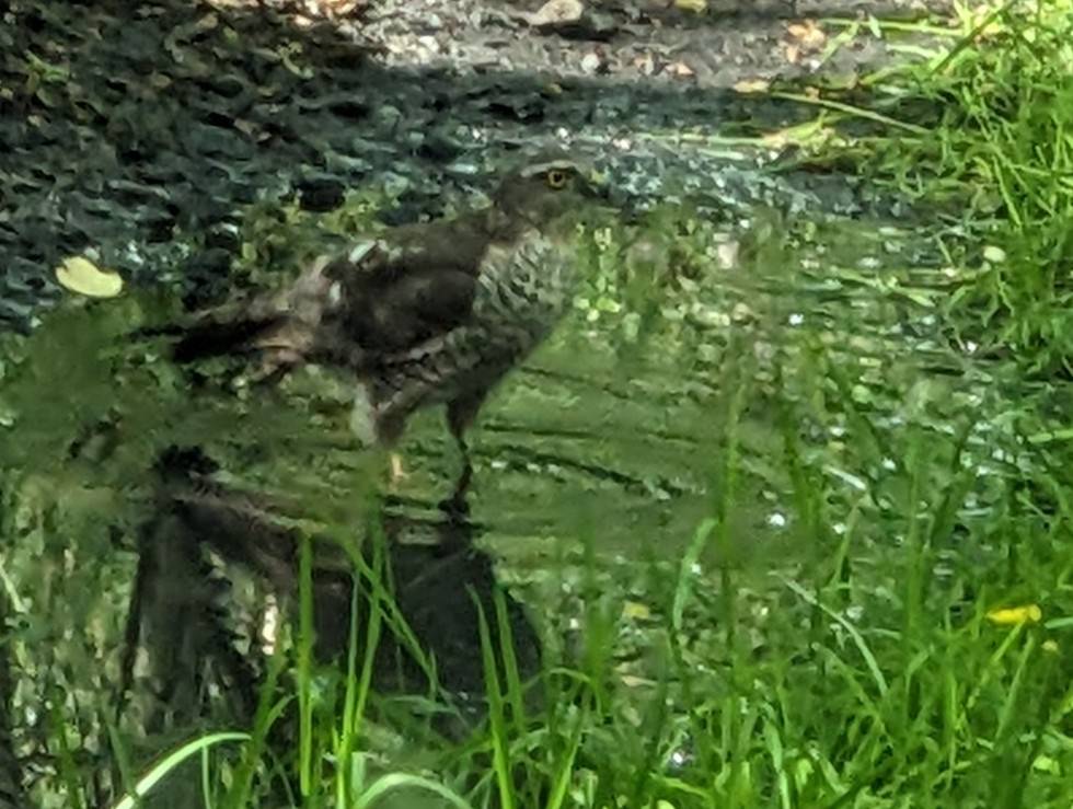 The one that occasionally visits our feeder. Lives in the woods at the end of the estate. As I was driving to work one day it darted left to right in front of the car in front of me snatched a bird then darted right to left in front of me and back into the woods.