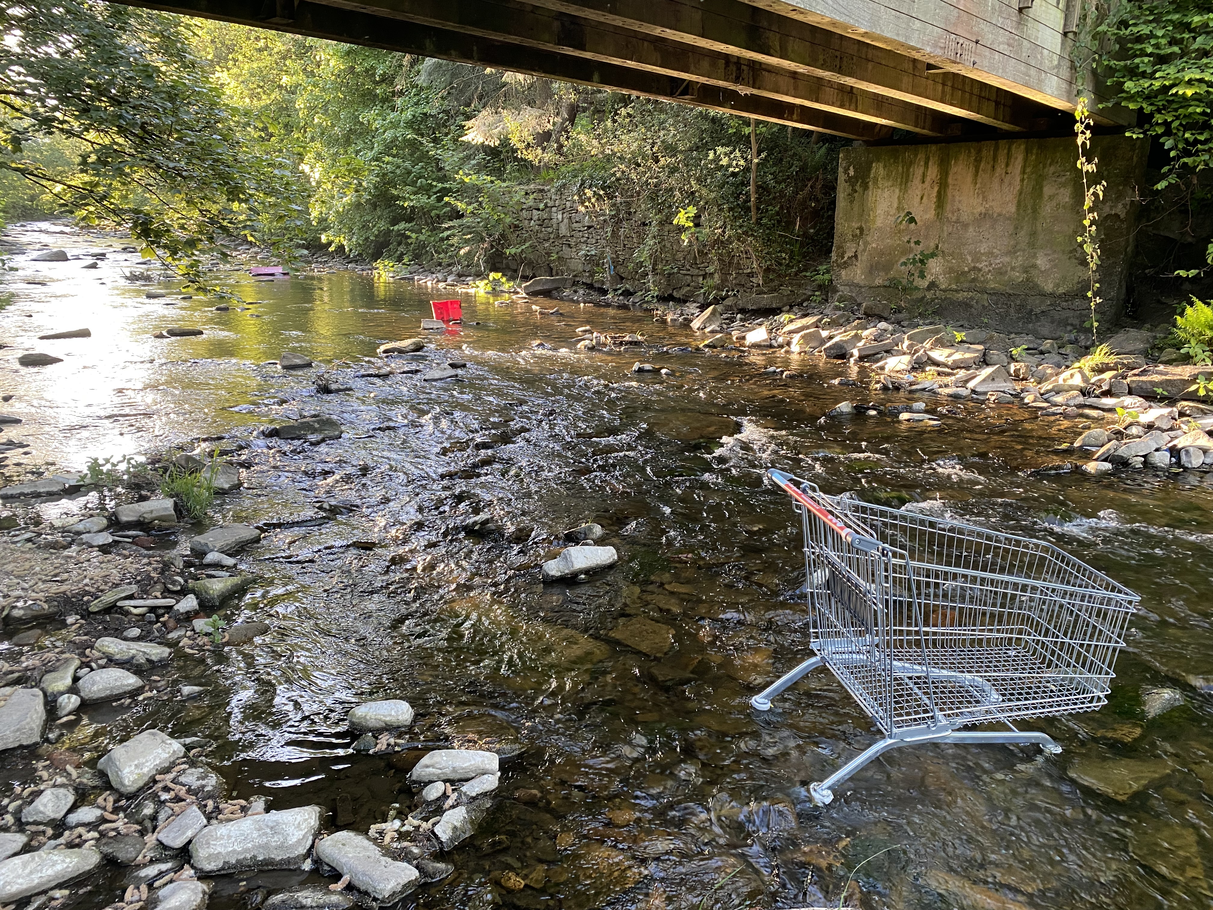 Waded in and got the red mop bucket that's been annoying me for awhile. Trolley left in the graveyard behind Home Bargains, bag left at council bin for collection.