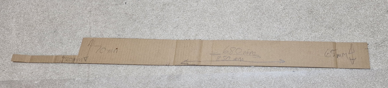 I think I want them about 0.5mm - 1mm thick and probably brushed finish rather than shiny so the scratched are less obvious. I have made the cardboard template below.
