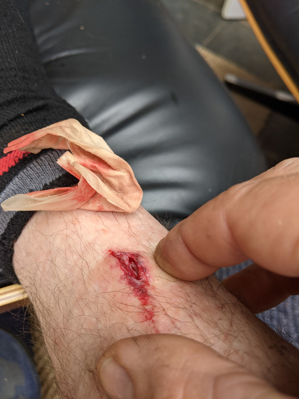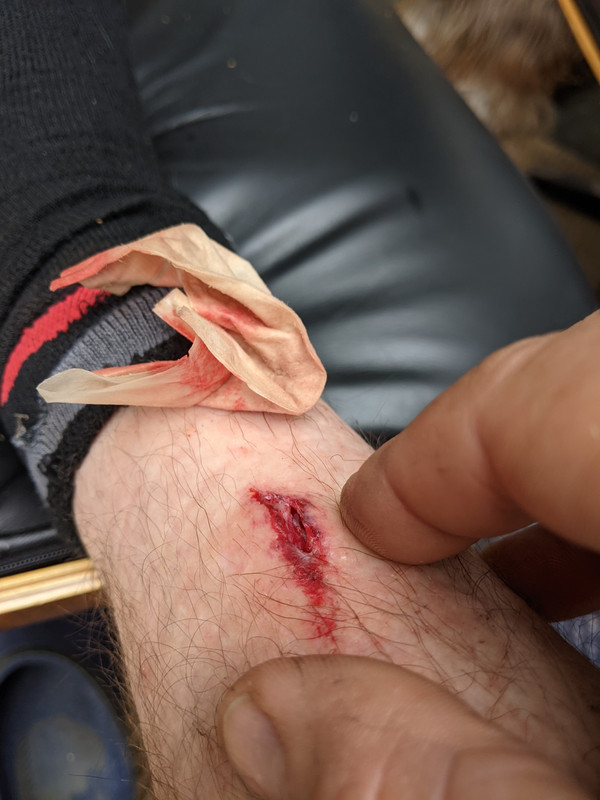 What I do have is about a 20mm gash to my shin from a pedal.