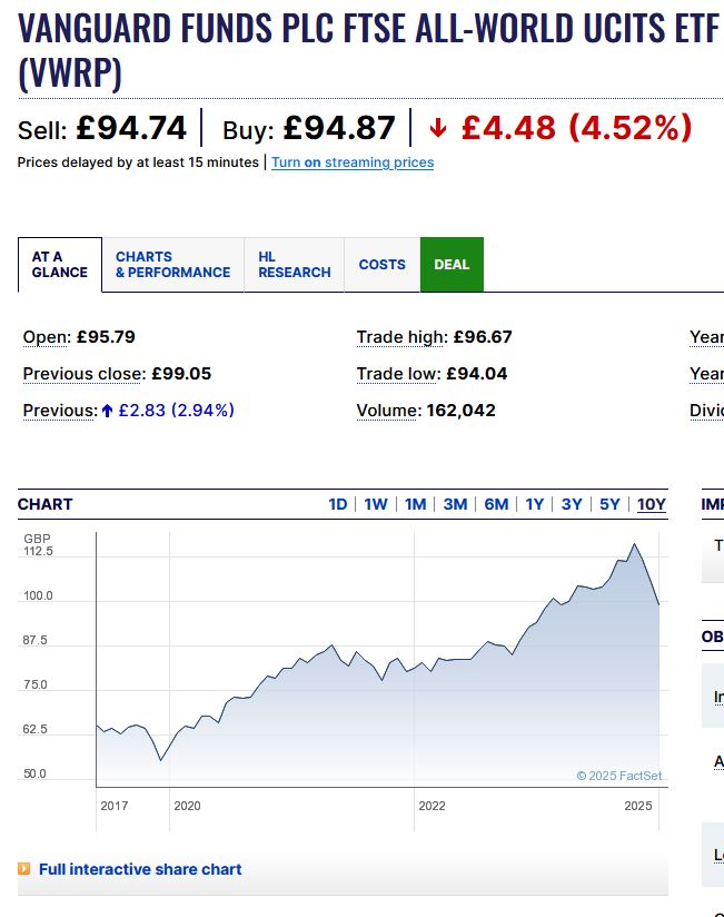 Not an ideal situation for anyone retiring shortly and wanting to take 25% straight away, but my US tracker is down to where it was in ~Feb 2024. Still 18% up over April 2023. It could certainly be / get a lot worse but it's not that bad considering the gains since covid.