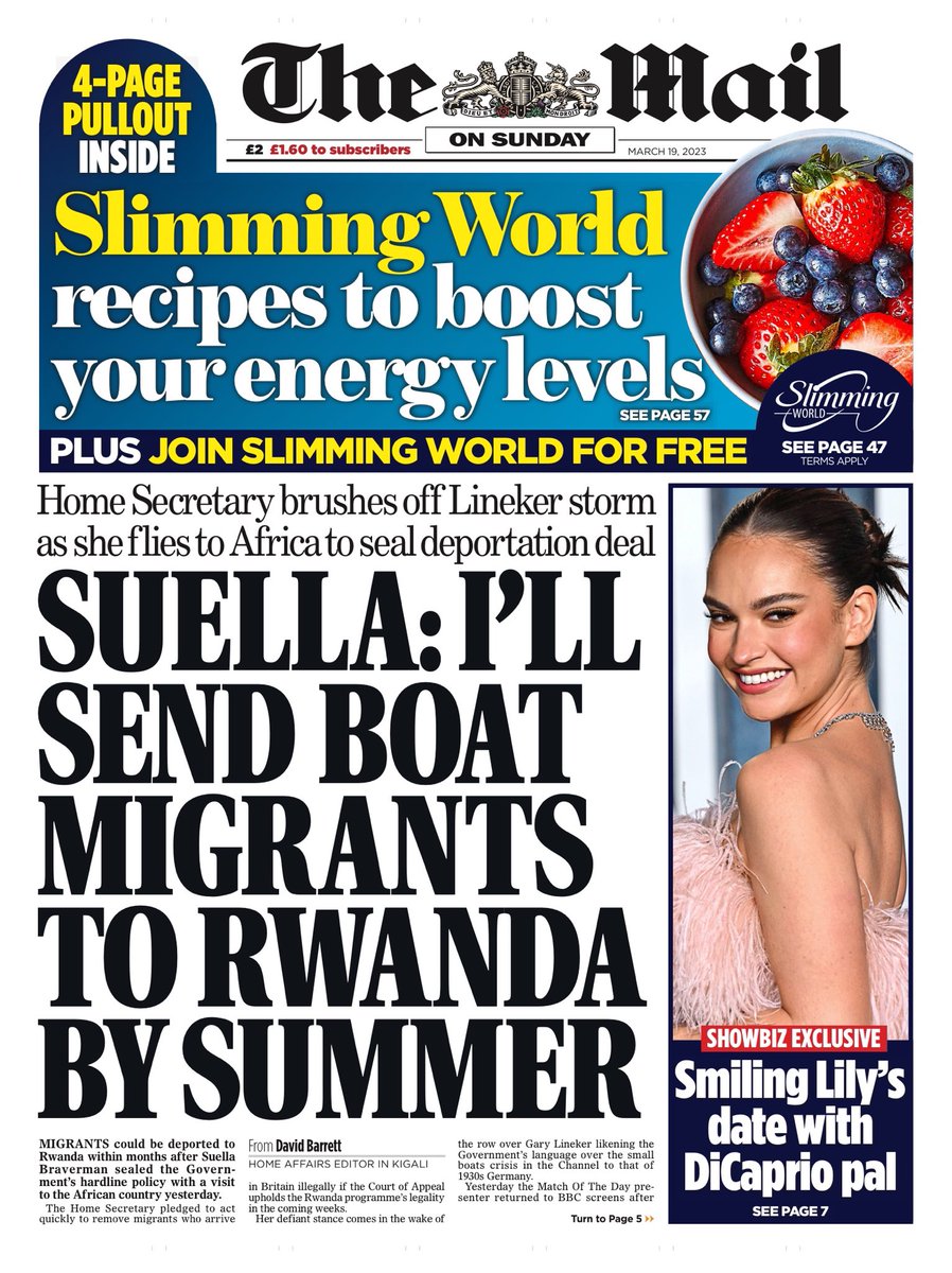 Both the front pages you posted are from the Daily Mail, not the Mail On Sunday. Not that it proves that they are particular fans of Braverman anyway as the daft Rwanda policy isn't even her idea.