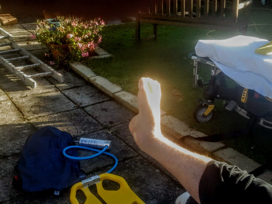 [i]Bet you had crocs on…[/i] I would not be seen dead in Crocs. This was an 8am conservatory cleaning related injury whilst rushing to buy a Maserati.