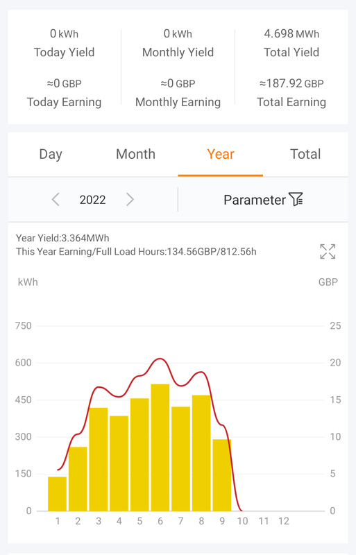 Then I got a new inverter (same brand but battery ready ). It seems to give me power generation at lower light levels so I have high hopes for better readings