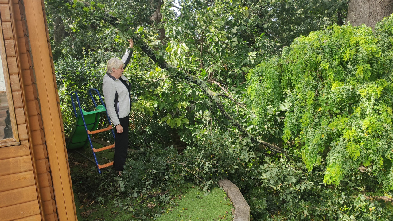 It was probably her quick thinking reaching up and grabbing the branch that stopped it damaging the shed.