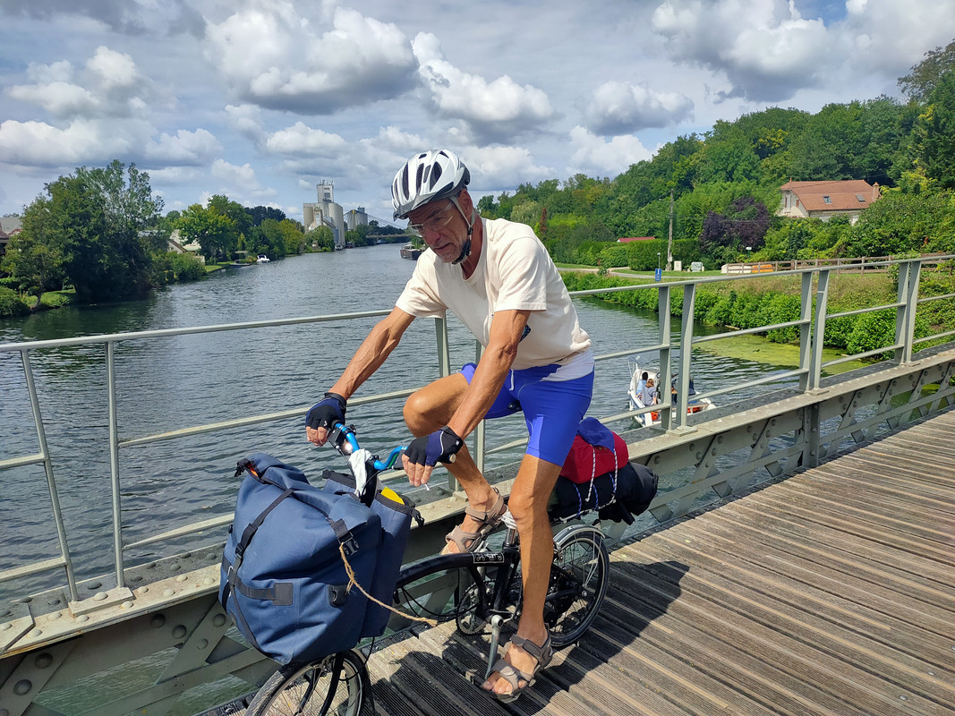 Having walked Stevenson in early July it was time to go cycle camping. Checking out the weather forecast central France seemed a good bet so we booked tickets on a BlaBlaBus to Paris with the idea of cycling south and taking a train when we'd had enough. That meant Bromptons. The bus got into Paris as light appeared in the eastern sky and we made for the Seine: