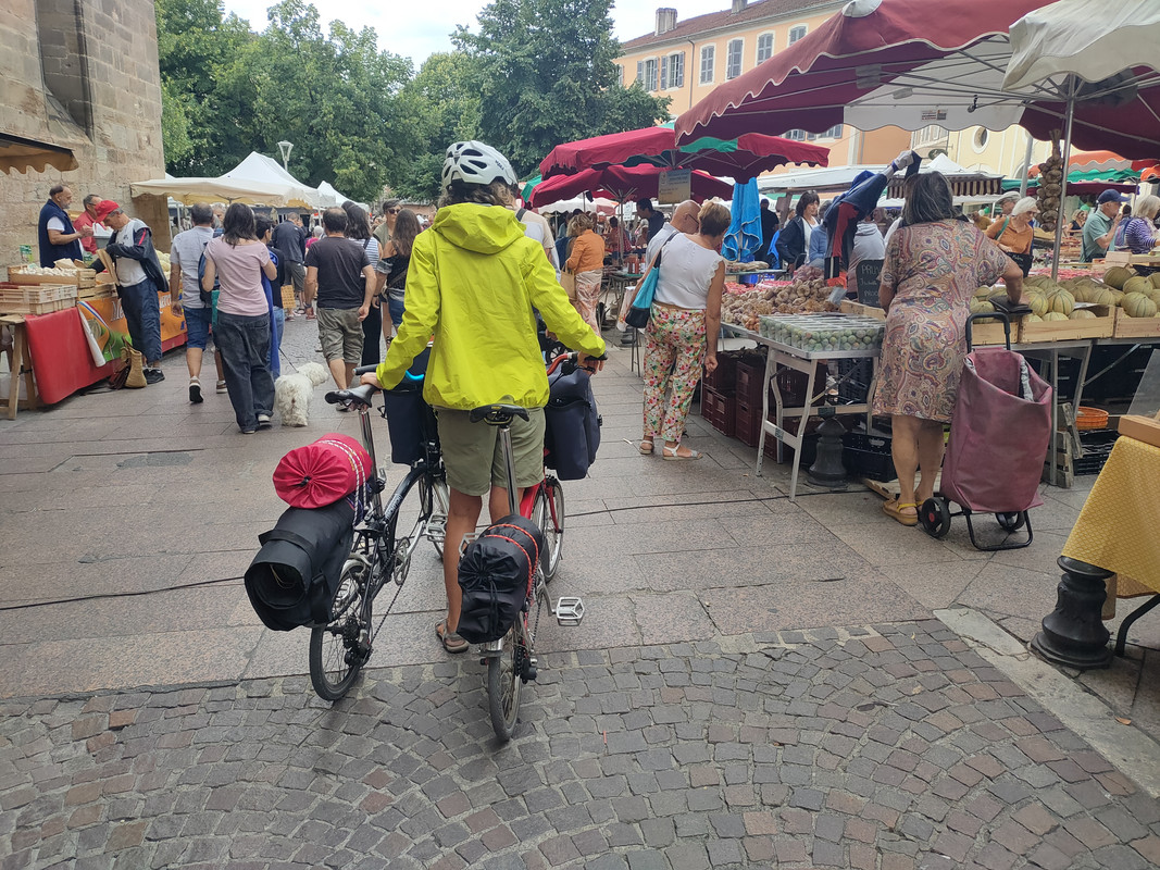 Tempertures were perfect until Rocamadour, sometimes even chilly, but then it got a bit warm which combined with loaded inefficient bikes and 1000m+ days wore down our enthusiasm. We arrived in Cahors with a forecast of 39°C for the next days: