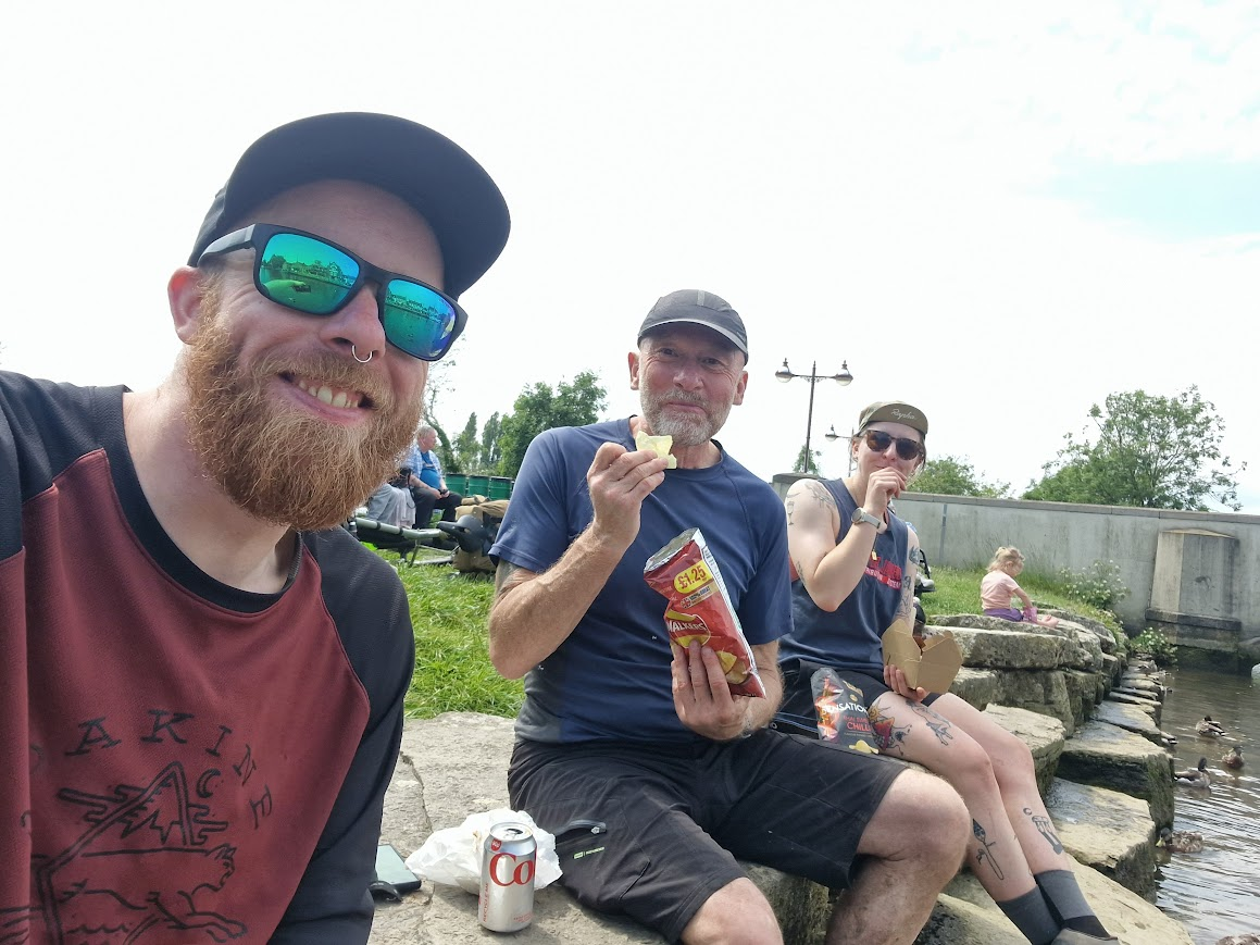 Next day was sunny to start along the Mawdach estuary the over a big hill to Coed y Brenin (no cafe anymore) wheryit started to rain. But stopped by the time we got to Traws with one of the guys needing some TLC due to cutting his leg falling off on the descent.