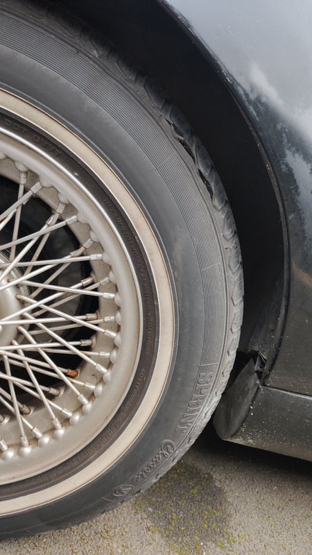 TBH it that damage looks like the delamination you used to sometimes get on remoulds back in the day (they don't still do them do they?). As a child I remember a remould my dad had fitted on his old Hillman taking itself apart on the M6, happy days!