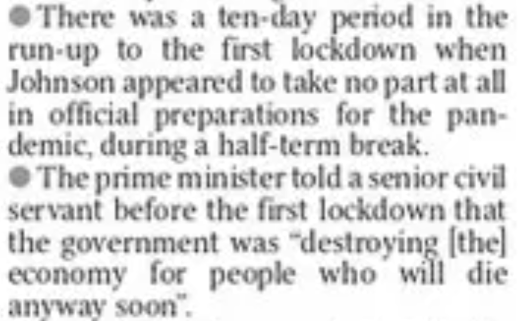 Johnson simply couldn't be arsed to turn up for COBRA meetings as he preferred to have his meetings in his study and crossing the road was literally too much trouble