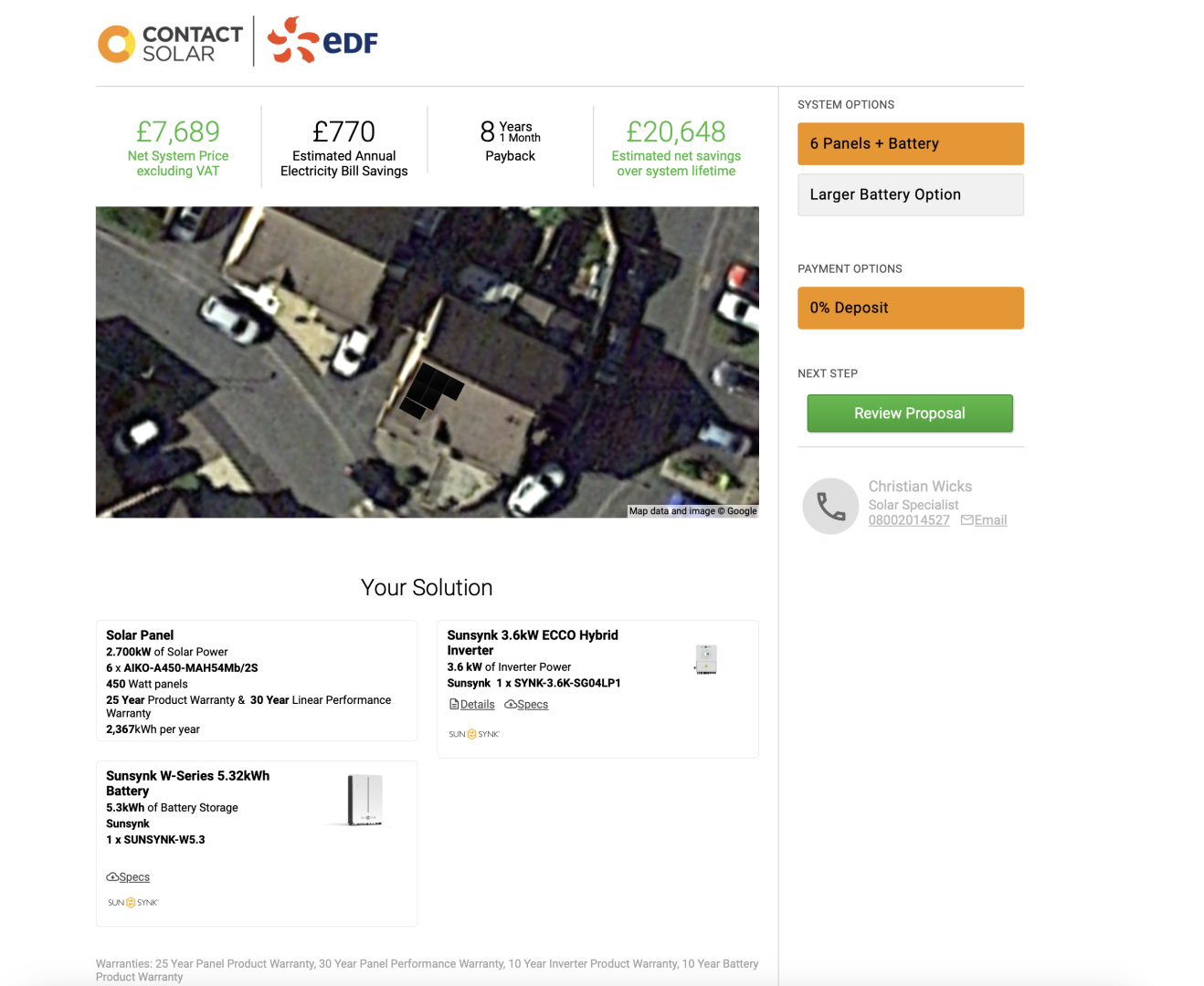 £6449 for my requirements using Sunsynk inverter and battery.