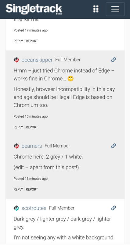 Yeah, I’m getting two dark grey one light, using Brave as my browser. I’m a subscriber so I don’t get adverts, so as someone said it may be the lack of ads causing two grey posts to glom together.