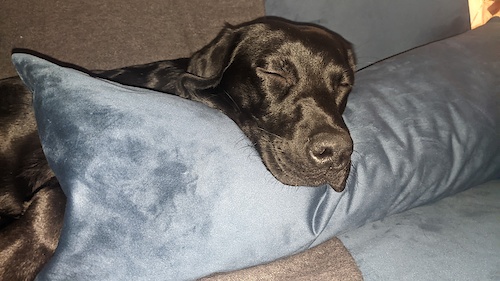 She does plenty of brain work too, as she is a broken lab a lot of her food has to be in a puzzle feeder before she'll eat it! We also do lots of find it games and gundog training. Overnight sleeping has just always been a struggle if we're not right there with her.