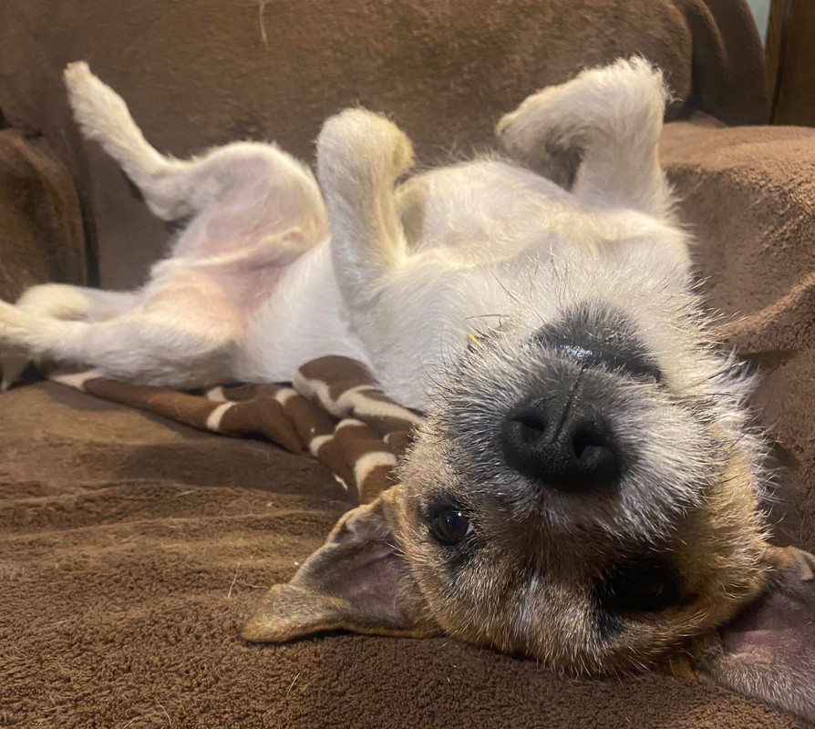 Couple of messages with rescue charity and they paired us with Ivy. We visited her at her fosterers, she came to visit us at our house and seemed to settle OK so stayed. then slept for what seems like a month. she couldn't jump onto the sofa, or go upstairs to start with, but we saw her physically change over time. she got very strong and now bounces all over the place.