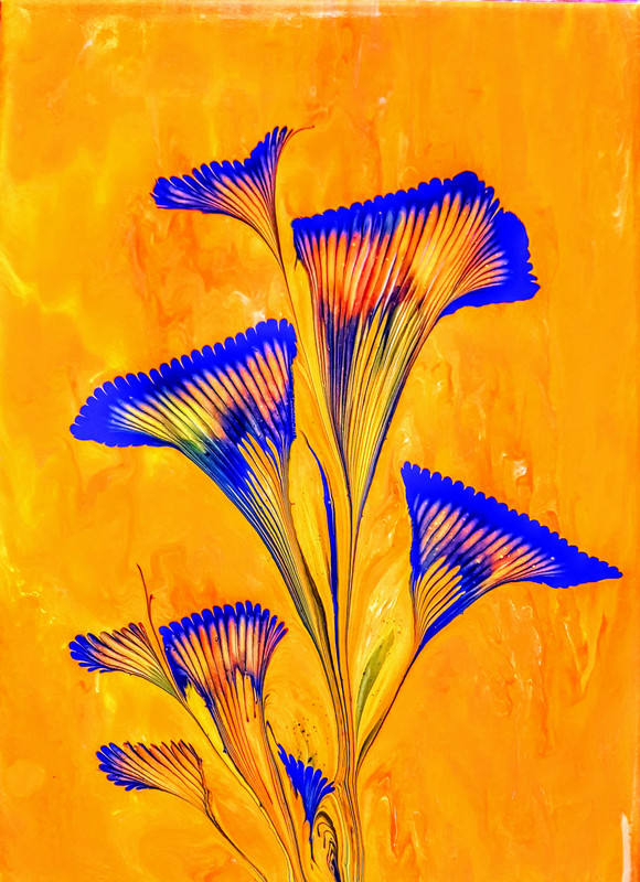 I was enjoying chatting to people at the market, while (not) selling my art, when a girl of around 10-12 years old asked how I did a particular painting. I explained that it was a chain drag where you dip a length of chain, like the ones that hold the sink plugs onto the sink, in paint and then pull it across the canvas to create a flower. She was struggling a bit to visualise this so I used a bit of string over the painting to show how it worked. Once she understood that, she was pleased, said thanks and walked off. I was happy, she was happy.