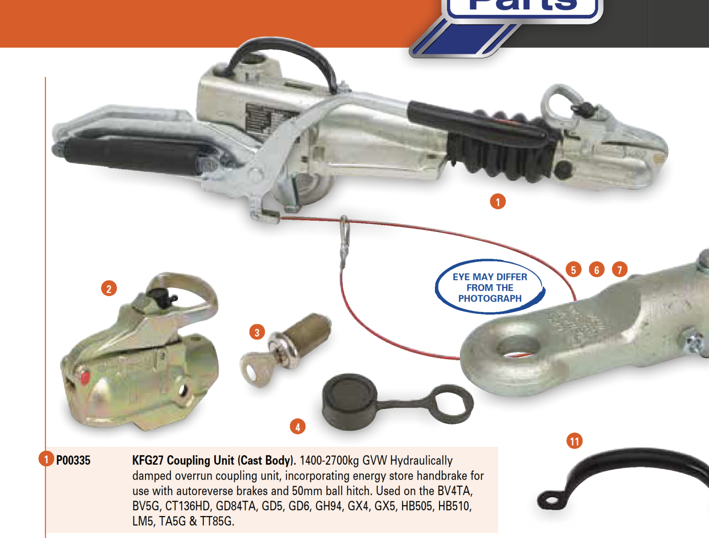 Just looked on Ifor Williams parts list too and this the the coupling unit they use - rated from 1400kg to 2700kg. So that's it's operating range not the unladen weight of the trailer...