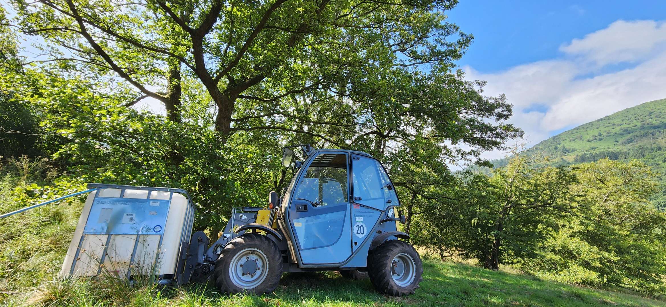 The 4 hooks suggests it moves dumpy bags which in my world means firewood yard tractor.