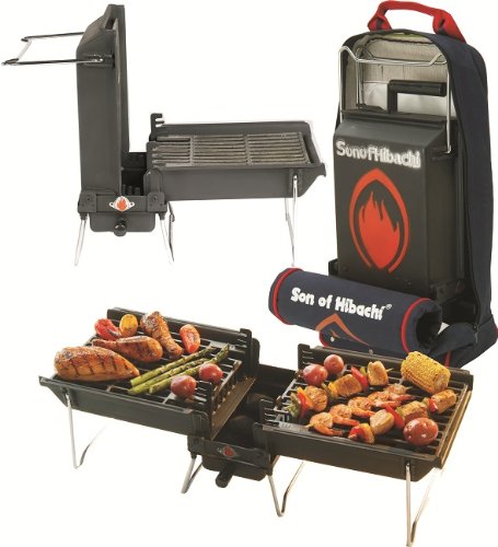 Not sure if you can still get them, but I love my Son of Hibachi travel BBQ. Not the biggest, but as long as you use both sides and therefore dont have a lid, it will cook for 4-6 people (burgers+sausages).