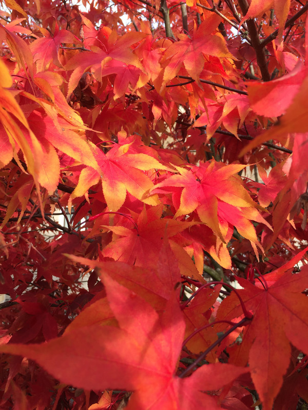 Native Rowan, with red berries, and an Acer Palmatum. I have an Acer, variety ‘Osakazuki’, which I went to a nursery in Newbury to buy, after I asked the people at Westonburt Arboretum where their trees came from.