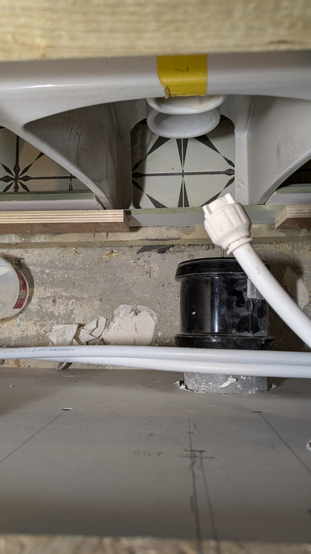 Good spot @singletrackmind - it was just temporary, it's got a cap in the end to stop unpleasant gases whilst working on the rest of the cupbo... Errr, room.
