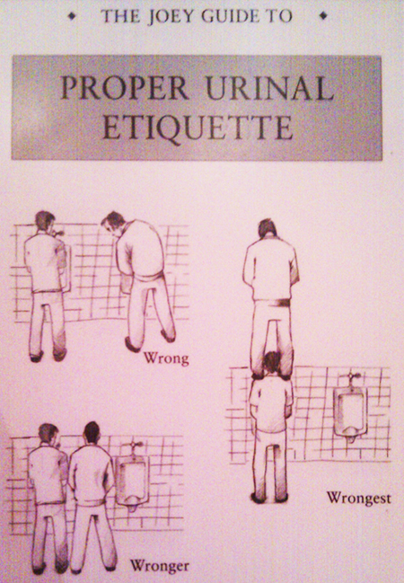 This no talking at the urinals must be a souther. Thing, is it?It's perfectly acceptable to talk about the Sunderland back four whilst having a scoit.